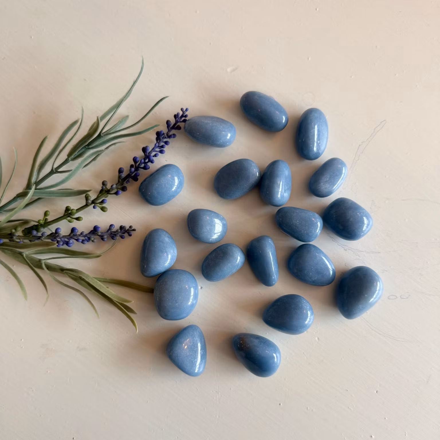 En stilla och himmelsblå sten som bär energin av frid, mildhet och klar kommunikation. Angelit har en mjuk, matt yta och ett lugn som känns direkt i handen – en sten som påminner om att andas djupare och lyssna inåt.