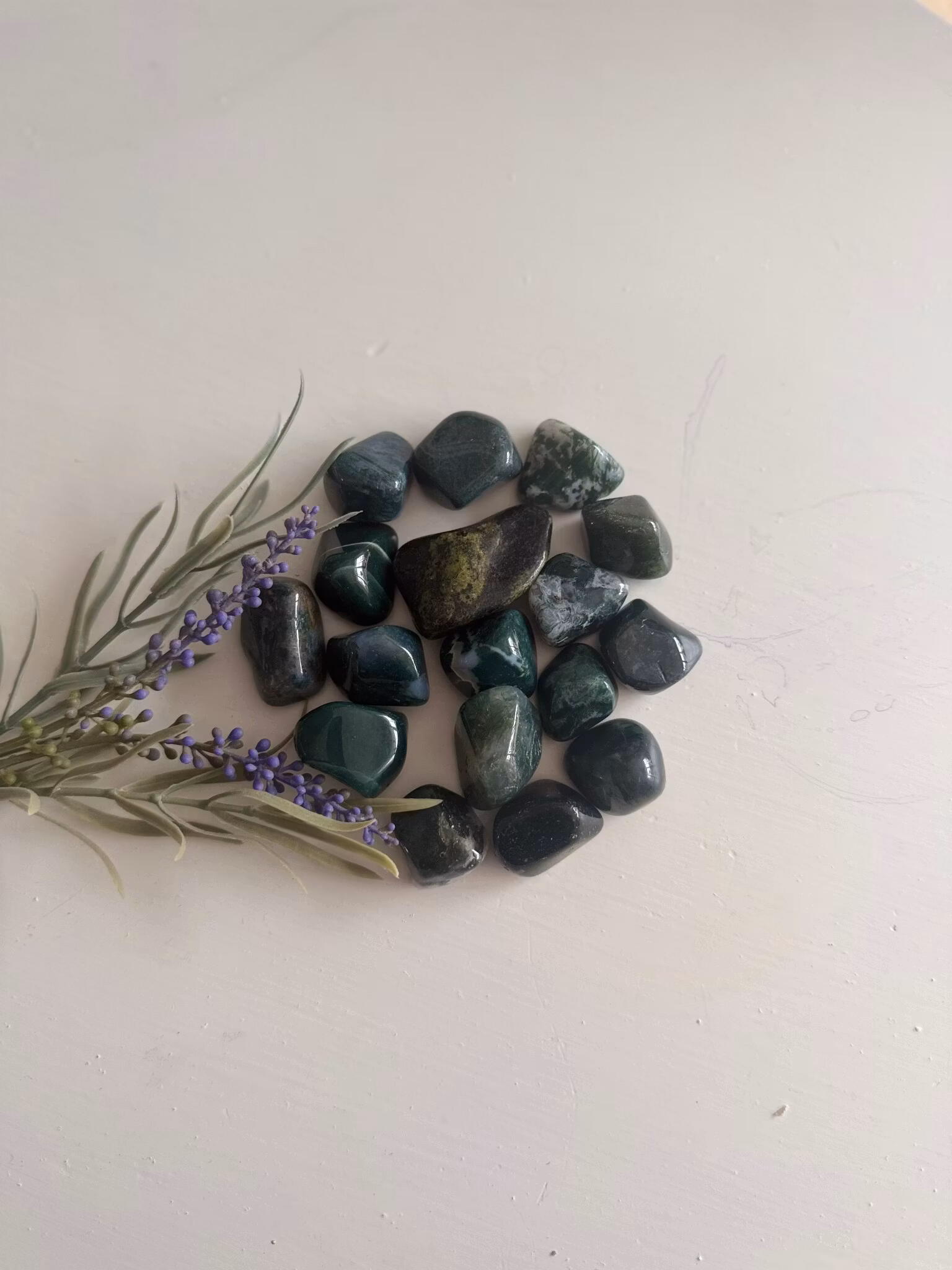 Mossagat bär naturens lugna energi och hjälper till att skapa stabilitet, balans och ett mjukt, tryggt energiflöde. En fin följeslagare när man vill känna sig mer centrerad, stärka tålamodet och bjuda in inre ro och naturlig tillväxt.